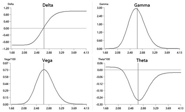 这3个指标阐明了盈利的来源。一方面,标的的单边大幅波动会通过Delta和Gamma传导到期权价格,促使期权价格快速上涨;另一方面,通常情况下,标的的大幅涨跌往往对应着隐含波动率的抬升,此时Vega也会对期权价格的上涨作出部分贡献。