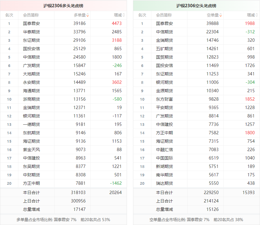 【沪银龙虎榜】多空双方均呈进场态势 多头进场意愿强于空头
