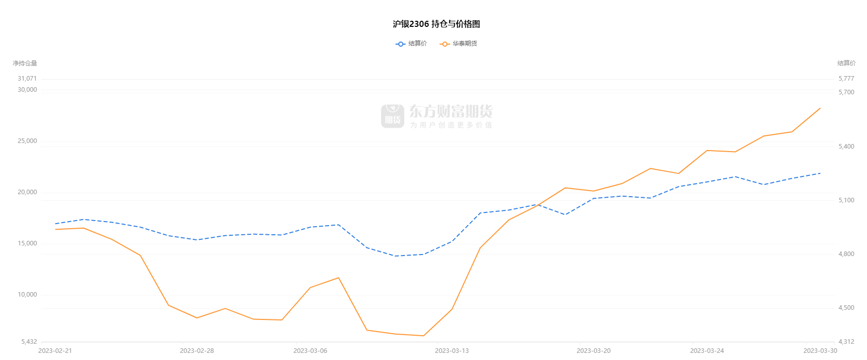 周四沪银主力合约收涨1.38%,收盘报5296元/千克。 当日持仓为596811手,较前一交易日增加35736手。 日内资金流入8.51亿元,成为当日获得资金流入量最大的商品主力合约。 多空持仓:今日前20席多头持仓318103手,共占全市场53%,其中多头第一名国泰君安占全市场7%。 前20席空头持仓229250手,共占全市场38%,其中空头第一名国泰君安占全市场7%。 前20席整体呈净多88853手,较前一交易日的净多86832手增加2021手。 ![]() 净仓趋势:下图可以看出,前20席位净持仓较长时间内处于净多态势。 ![]() 持仓动向:就多头而言,今日前20席较前一日增仓20264手,其中国泰君安、永安期货、东证期货增仓明显,三机构分别增仓4473手,3602手和3188手。 就空头而言,今日前20席较前一日增仓15393手,其中国泰君安、东方财富、方正中期增仓明显,三机构分别增仓1988手,1852手和1800手。 ![]() 盈亏剖析:数据显示,一周内华泰期货、浙商期货、大地期货在沪银上盈利居前,三机构分别盈利3442.66万元,2275.53万元,1858.68万元。 ![]() 一周内中财期货、国泰君安、国贸期货在沪银上亏损居前,三机构分别亏损3394.10万元,3069.80万元,1191.65万元。 ![]() 同时下图可以看出,近几个月内华泰期货席位净持仓与沪银2306合约期价走势呈一定程度正相关。 ![]() 总体而言,沪银2306合约今日增仓上行,多空持仓排名前20席中,多空双方均呈进场态势,多头进场意愿强于空头。 注:可通过点击东方财富期货PC端左侧“龙虎榜”栏目及东方财富期货APP行情页面“龙虎榜”栏目查看各类机构持仓及盈亏榜单信息。