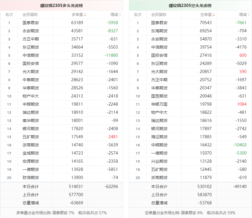 【螺纹钢龙虎榜】多空双方均呈退场态势 多头退场意愿强于空头