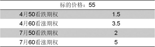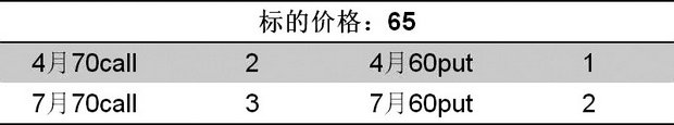 我们需要避免的是在短期期权到期之前标的价格大幅运动,如果这种情况出现的话,一般情况下我们要以策略收入为限,做好在该方向的风控。例如,标的价格如果在4月合约到期时为65,4月执行价60看涨期权价格为5个点,这个时候7月执行价60看涨期权价格为7个点,如果将该组看涨期权平仓,买回4月看涨期权需要花费10个点,而卖掉7月看涨期权只得到了7个点,合计会有3个点的支出,和最初3个点的收入完全抵消,只剩下1手7月执行价50看跌期权,基本上也会很大可能无价值到期,但通过这样的风控措施我们限制了更大的风险暴露。