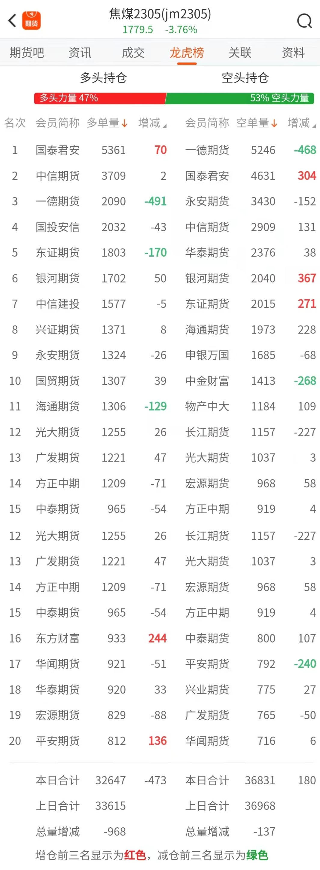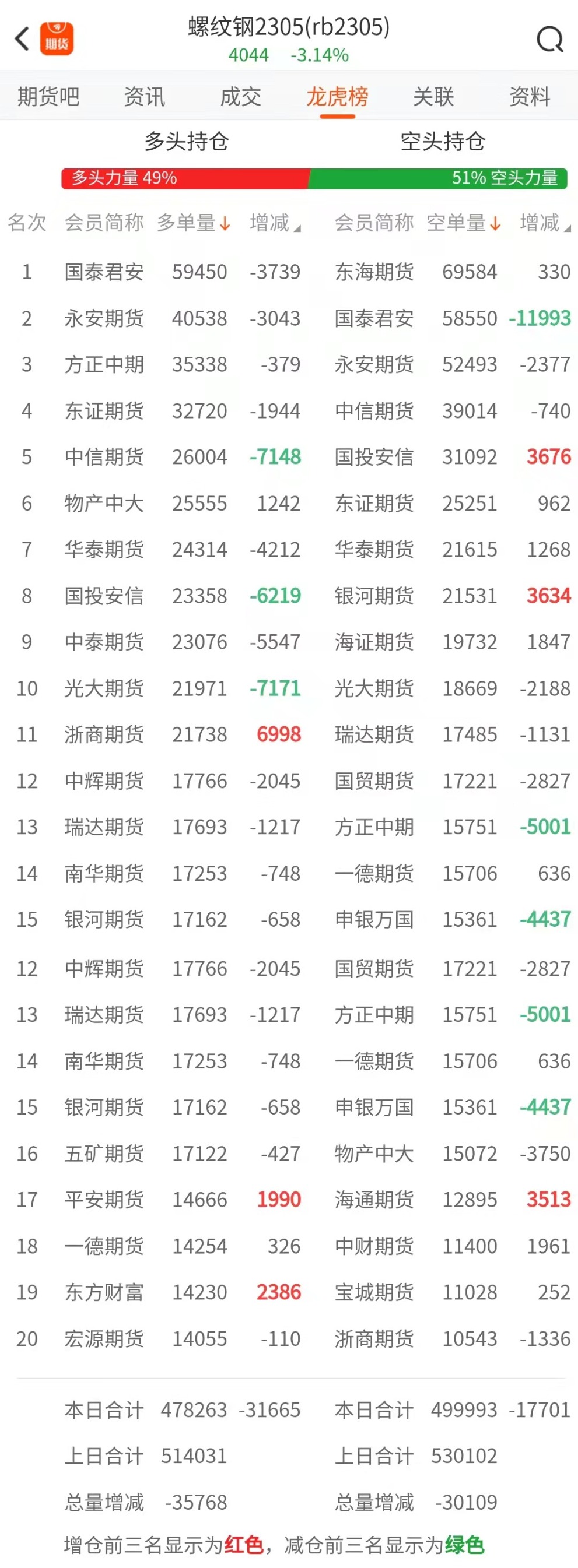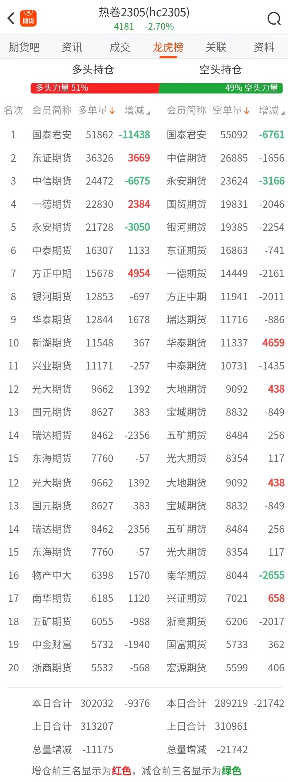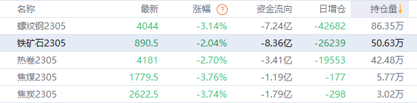 黑色持仓龙虎榜:黑色系全线下跌 多头第一名减持近1.2万手螺纹空单