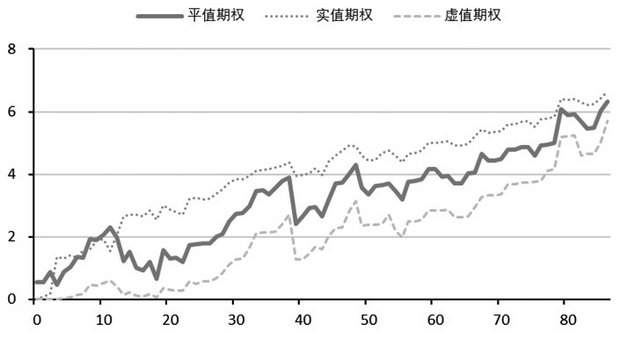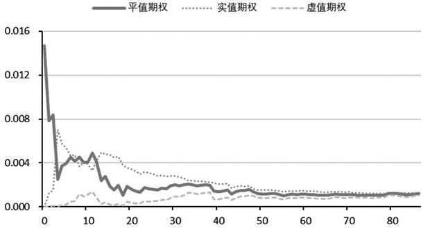 希腊字母作为度量期权风险的金融指标,常常被专业投资者所关注,这些指标是期权价格受不同因素影响的边际变化率。例如,最常见的Delta值(又称对冲值),是期权价格对标的价格的偏导数,是衡量标的资产价格变动时期权价格的变化幅度,即Delta=期权价格变化/标的资产现货价格变化;Gamma值,是对Delta值的偏导数,或者说是标的价格的二阶偏导数,反映Delta值变化或标的价格变化快慢对期权价格的影响;Vege值,是标的波动率大小对期权价格的影响,Vega值越大,投资者面对波动率变化的风险越大;Theta值,定义为在其他条件不变时,投资组合价值变化与时间变化的比率,也称为组合的时间损耗,表示时间每经过一天,期权价值会损失多少。
