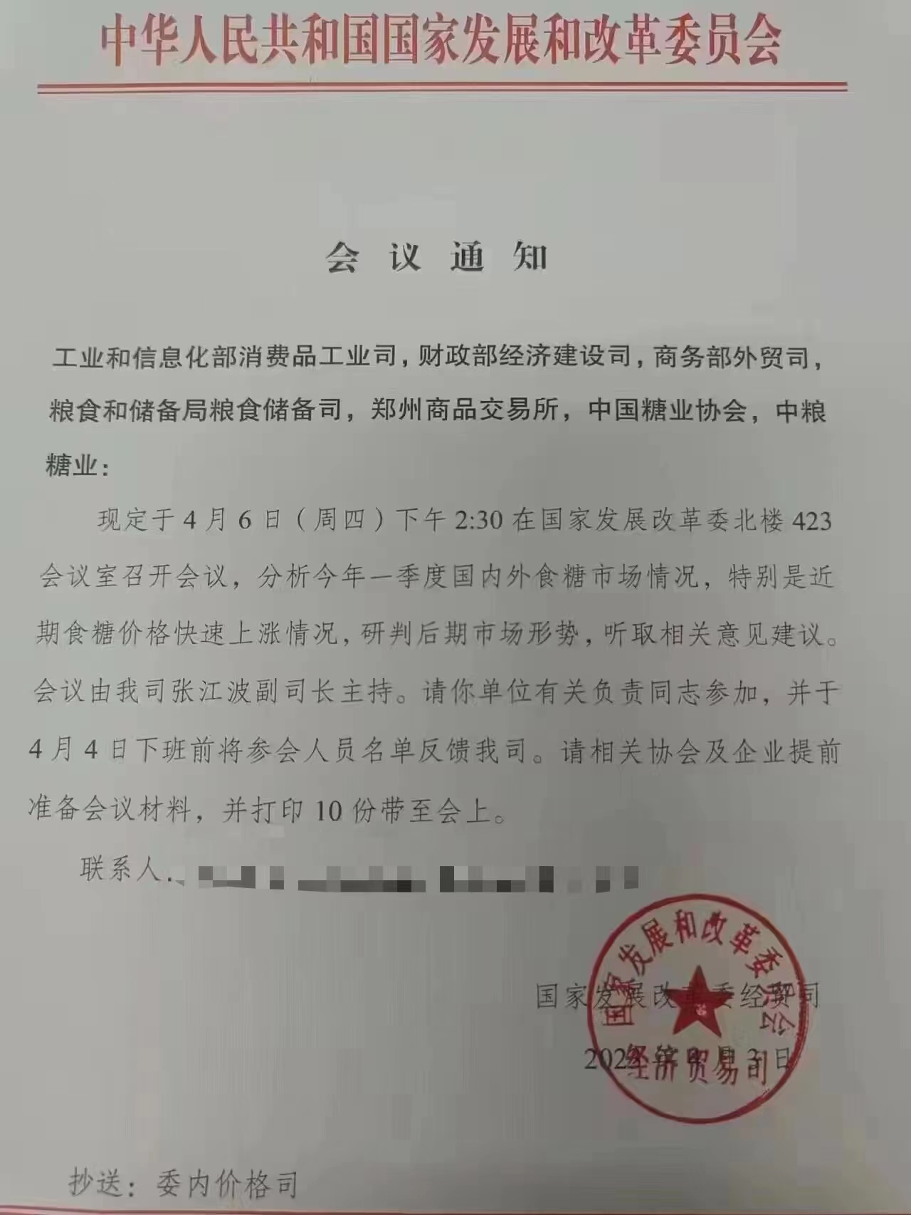 知情人士:发改委周四将召集多部门针对糖价上涨召开会议 研判食糖后期市场形势