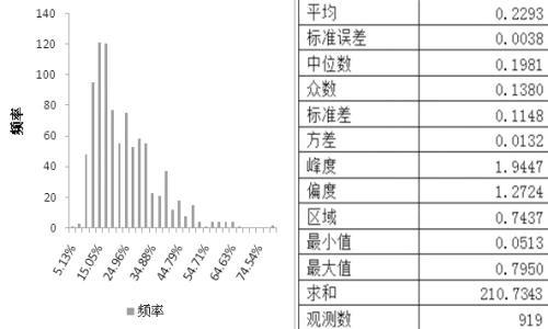 图为近月合约平值隐含波动率频率直方图与统计性描述