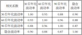 由上表可知,各周期历史波动率间的相关性很高,隐含波动率与历史波动率相关系数也在0.87以上。历史波动率的大小不仅体现了金融资产在统计期内的波动状况,而且是分析和预测隐含波动率的基础。