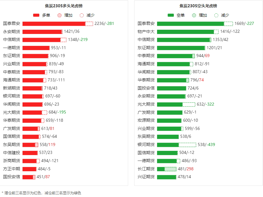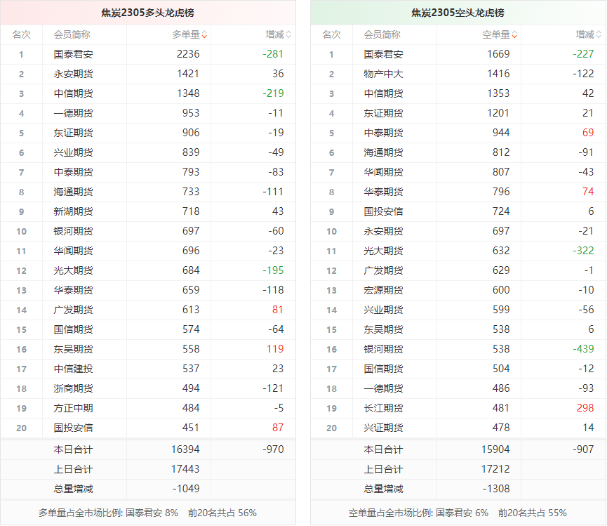【焦炭龙虎榜】连续两日跌幅居前 多空双方均呈退场态势