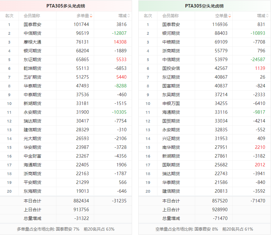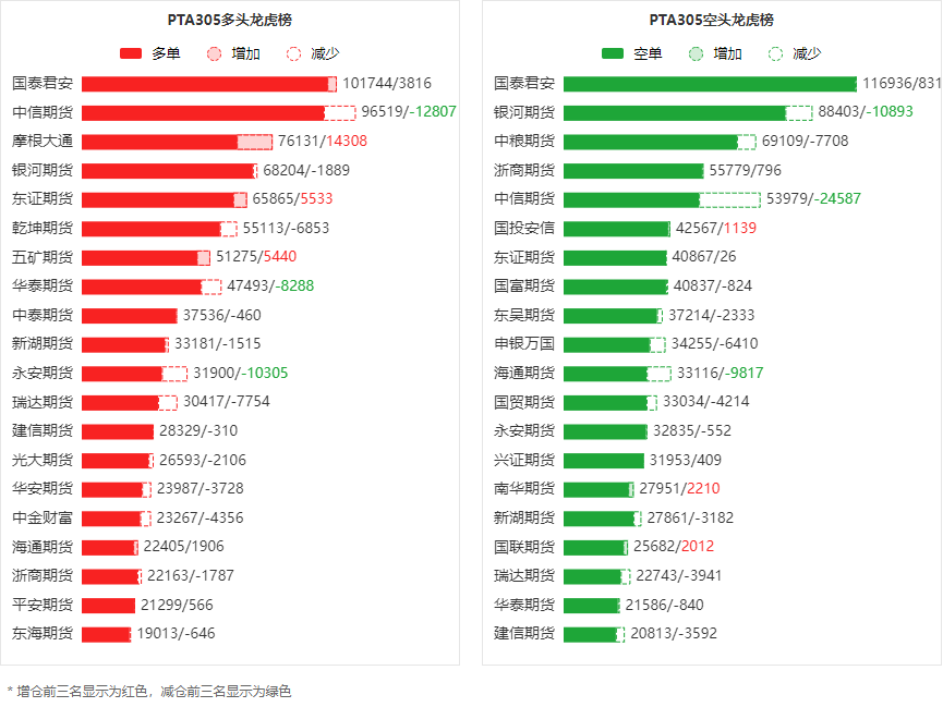 【PTA龙虎榜】日内减仓近10万手 多空双方均呈退场态势