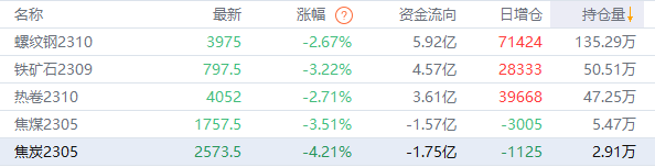 黑色持仓龙虎榜:黑色系全线下跌 多头第一名增持超1.1万手螺纹空单