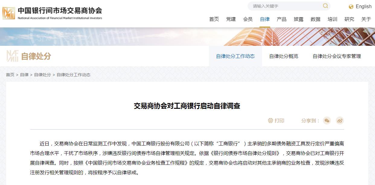 交易商协会对工商银行启动自律调查