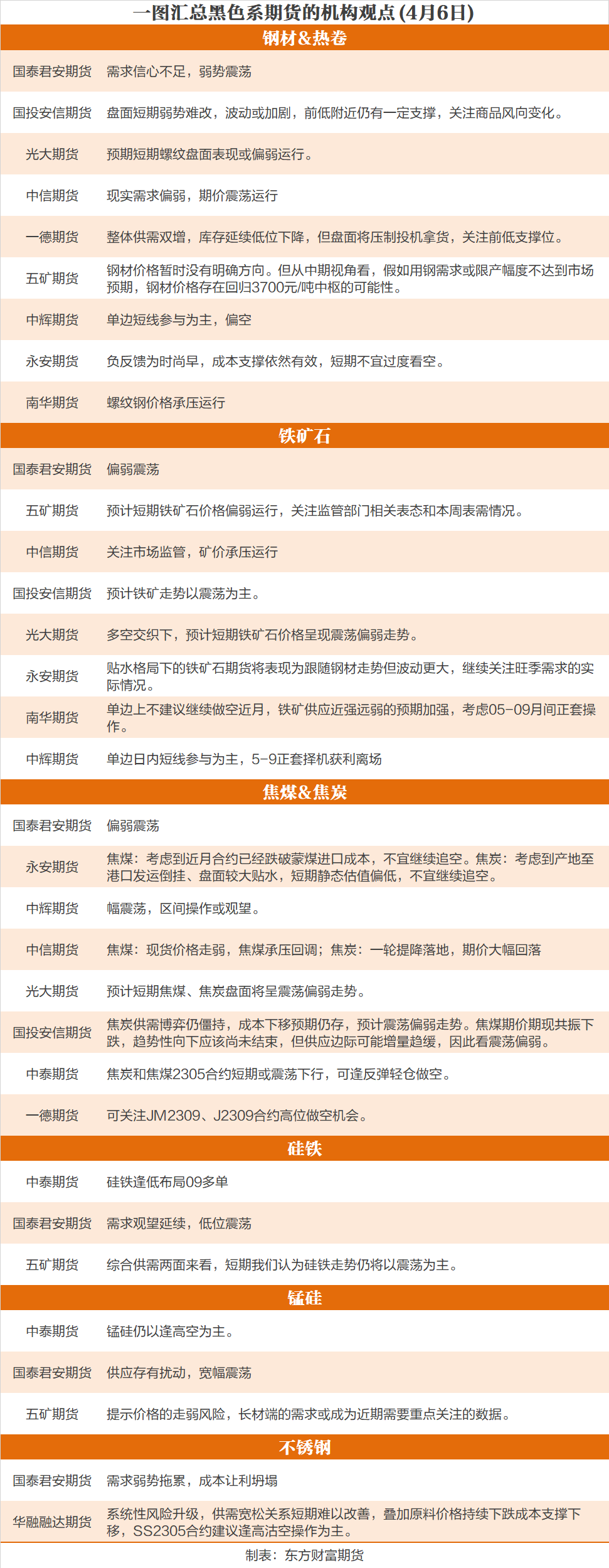 一图汇总4月6日黑色系期货机构观点