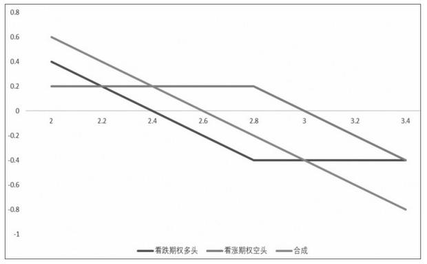 通过引入合成方法,跨式期权组合可以有三种组合合成方法:一是买入看涨期权和买入看跌期权;二是卖出看涨期权和合成看跌期权;三是买入看跌期权和合成看涨期权。这样就可以从三种组合合成方法中,选出最优成本的策略完成跨式期权组合的建仓。